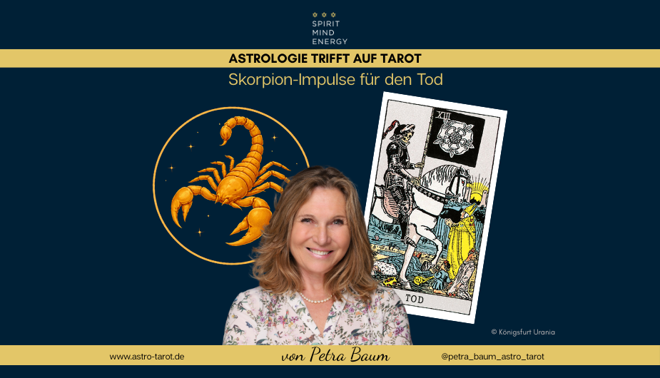 Manche astrologischen Zuordnungen zu den Großen Arkana wirken wie geschaffen füreinander – so auch diese: Die Verbindung von Skorpion und der Tarotkarte Der Tod zählt zu den wenigen, die fast alle Deutungsschulen übereinstimmend sehen. Auch in der plausiblen Zuordnung nach Hajo Banzhaf, der sich an der modernen Astrologie orientiert, sind diese beiden fest miteinander verknüpft.