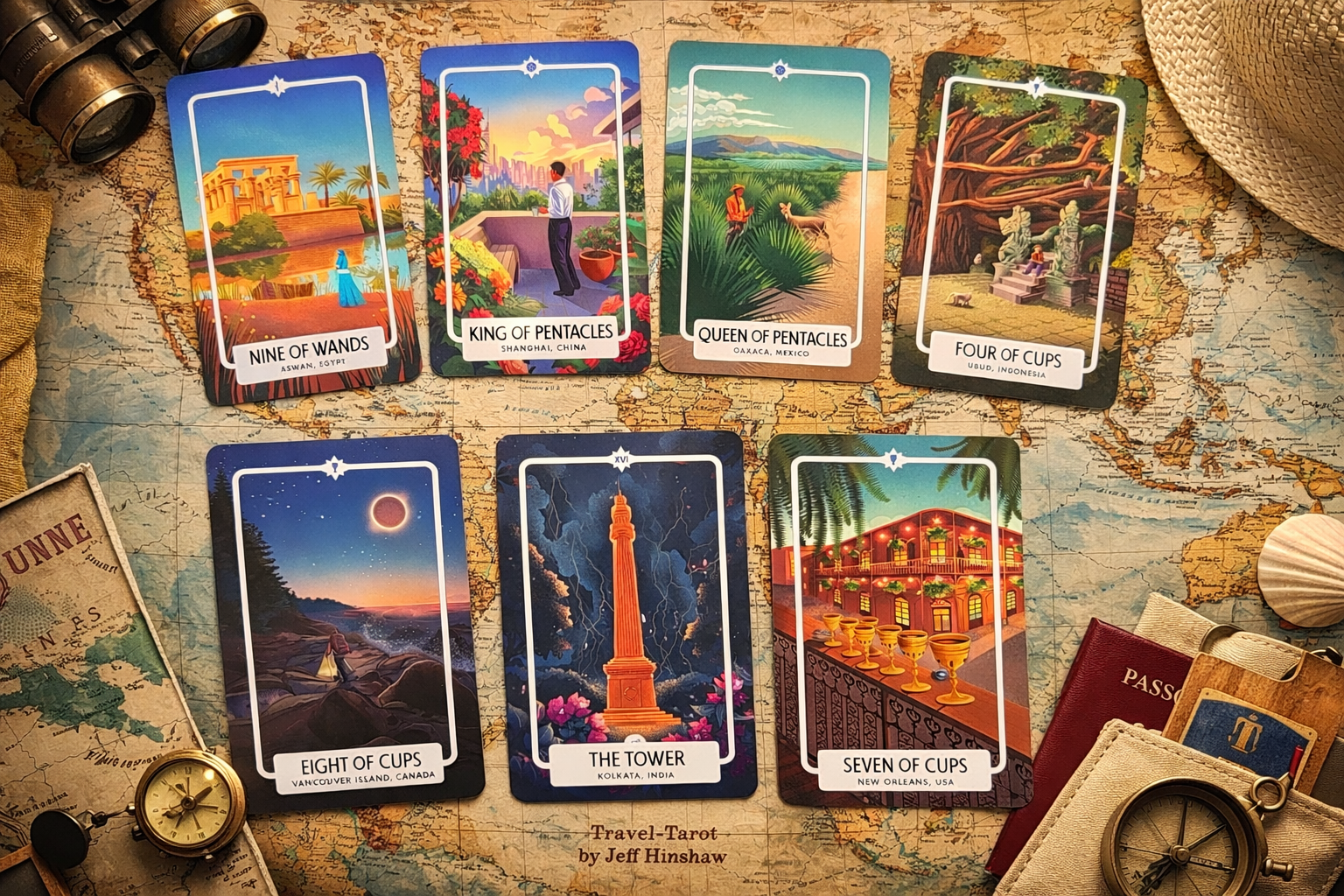 Tarot kann vieles sein: Spiegel der Seele, Werkzeug der Selbsterkenntnis, Symbolsprache des Lebens. Mit dem Travel Tarot von Jeff Hinshaw wird eine weitere